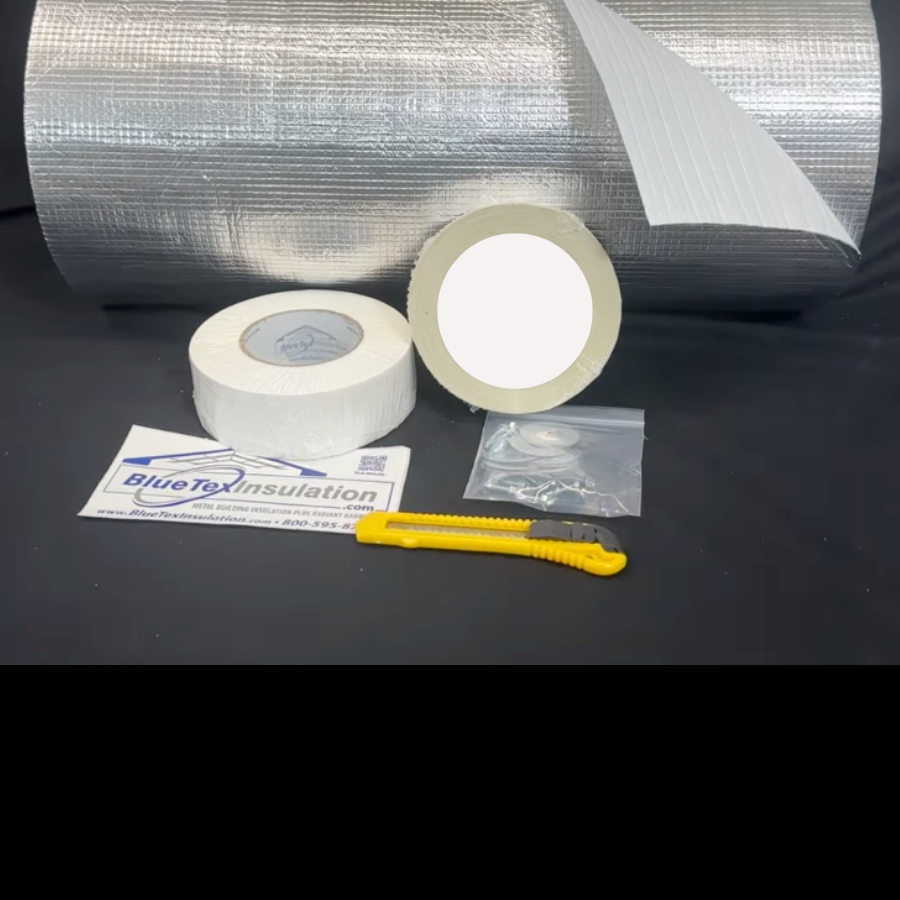 The BlueTex™ 22" Wide 2mm Residential Garage Door Kits are designed to help keep your garage insulated and more comfortable. Each kit includes your BlueTex™ Pro 2mm foil/foam door insulation, 1 roll of 1.5" x 180' long double-sided tape (recommended to apply to the door on the perimeter of each panel), and 1 roll of 2" wide x 196' long white seam tape (*note: this is a different size than our 3" wide white tape) for securing the edges to the metal. The kit also includes screws/washers that are optional, if you want to attach the insulation permanently to the inside of the door and a utility knife to cut the insulation.